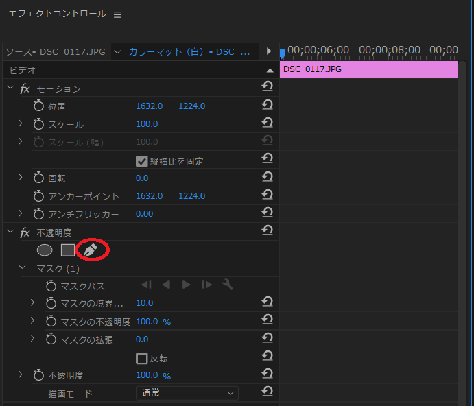 「エフェクトコントロール」パネルで「不透明度」のペンツール