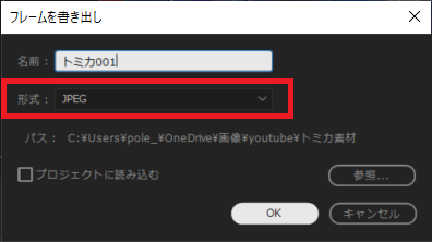 「フレーム書き出し」のウィンドウが開くので
