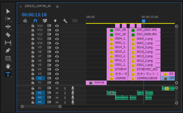 図1 画像の追加などでトラック数が増えたタイムライン