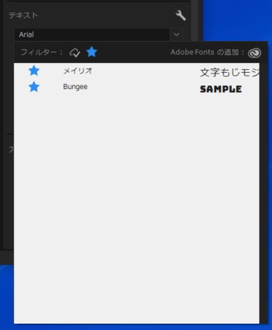 フォントの種類が多いのでよく使うフォントはお気に入り登録 しておくと便利です。お気に入りの検索はフィルタのお気に入りをクリック (図8) して行います。