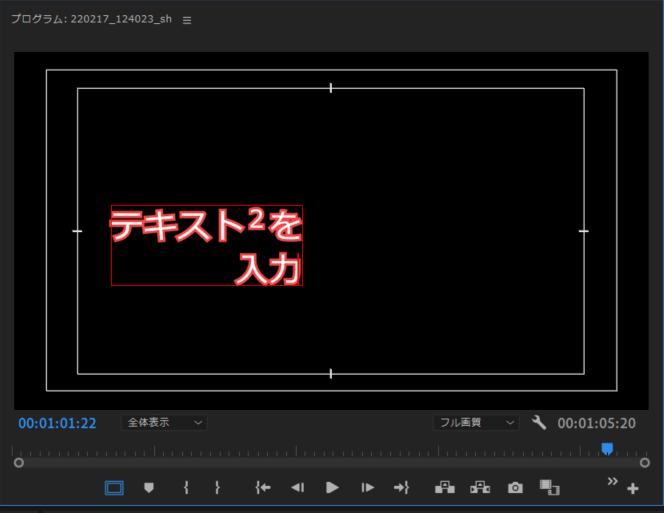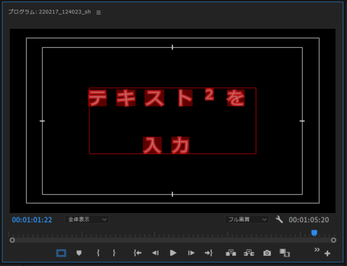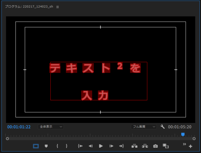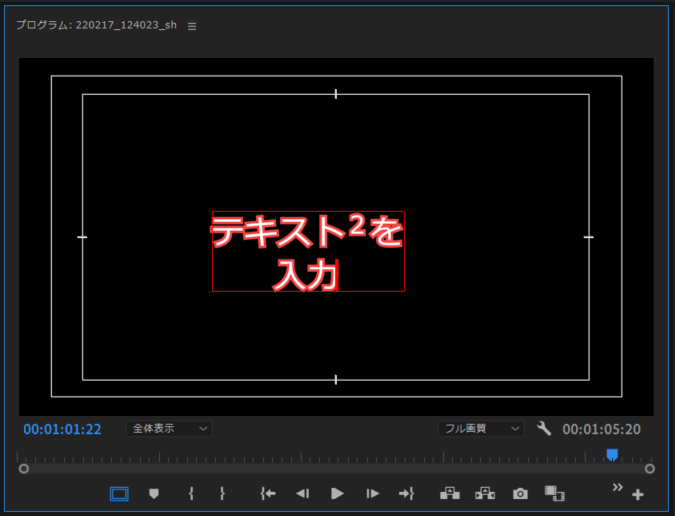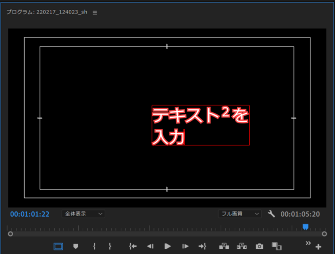テキスト入力 を選択しプログラムモニターをクリックでテキスト入力エリアが作成されます(図6)。